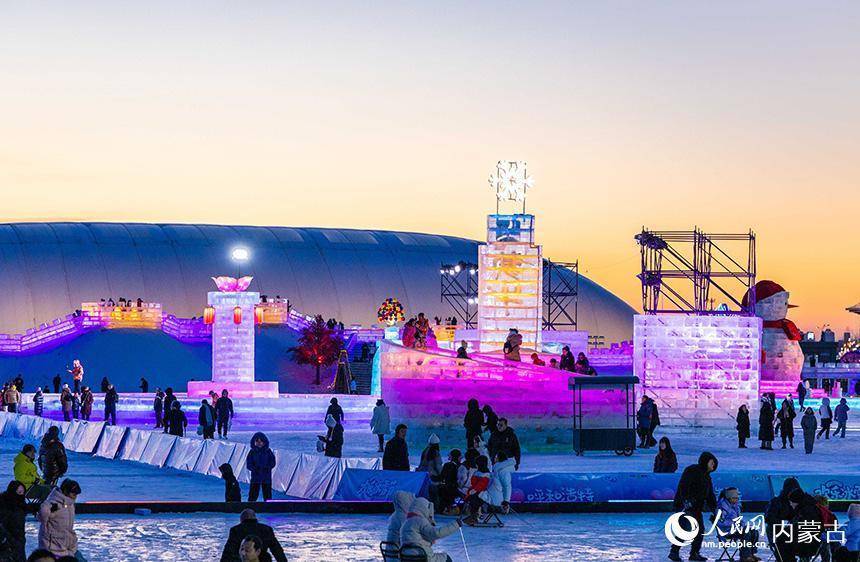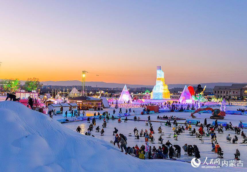 游客在第五届呼和浩特欢乐冰雪节活动现场体验冰雪项目。丁根厚摄12月31日,第五届呼和浩特欢乐冰雪节在大黑河军事文化乐园盛大启幕。本届冰雪节以“冰火奇缘 冰雪狂欢”为主题,创新融合自贡彩灯与巨型冰雕,以“仙侠草原”为脉络,通过花灯、冰雕、演艺、美食及企鹅互动等九大板块,为市民游客打造沉浸式冰雪狂欢体验。(丁根厚)