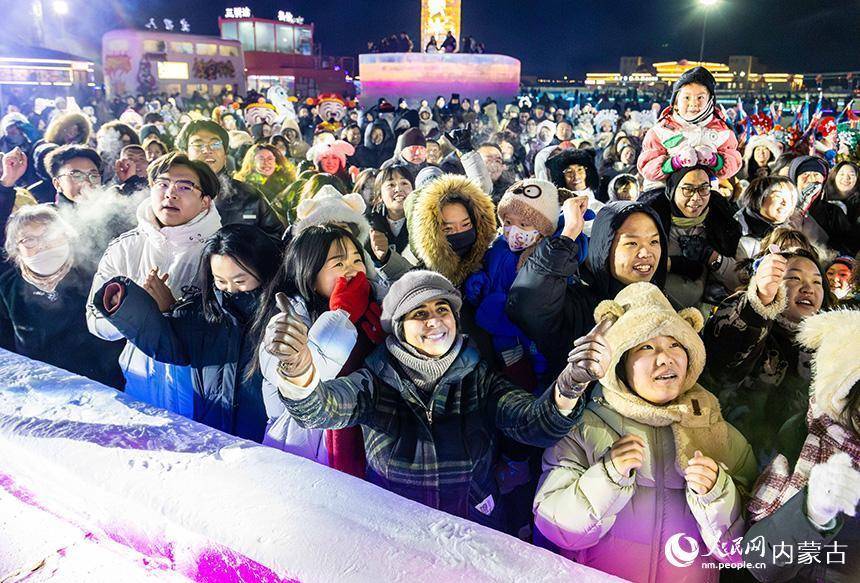 外国游客在第五届呼和浩特欢乐冰雪节活动现场观看演出。丁根厚摄