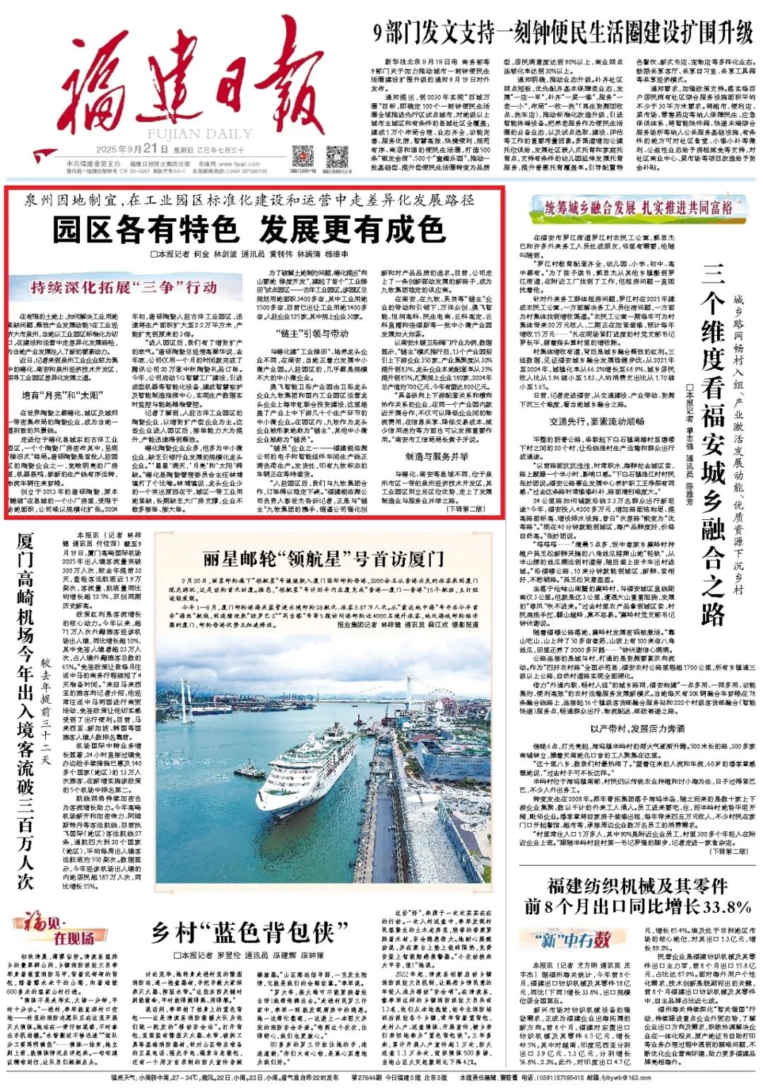 今天福建日报头版头条