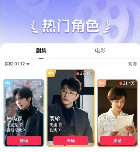漫不经心、邪魅一笑、默默注视……一段20秒的按电梯视频就吸引了超过30万的点赞,将代旭成功顶出圈。仅凭《轧戏》前6集累计3分钟的戏份,代旭就抢占了多个热搜词条,让观众直呼“孟宴臣2.0来了”,并登顶抖音热门角色榜首。