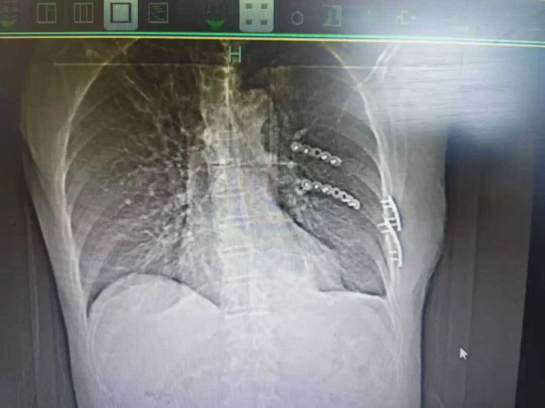 之后,医院迅速启动急救流程,经全面评估,莫军杰医生团队决定为裘叔进行手术,目的是固定骨折的肋骨,并通过引流排出胸腔内积血,解除疼痛并恢复正常呼吸功能。